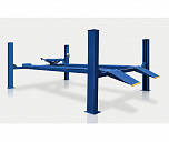 Подъемник четырехстоечный, электромеханический, платформенный. Предназначен для установки тест системы "сход-развал". Хорошо подходит для длинобазных автомобилей. По отдельному заказу подъёмники могут быть укомплектованы тележкой с домкратом для вывешивания передней или задней оси автомобиля. Подъемник комплектуется микропроцессорной системой синхронизации подъёма-опускания платформ.