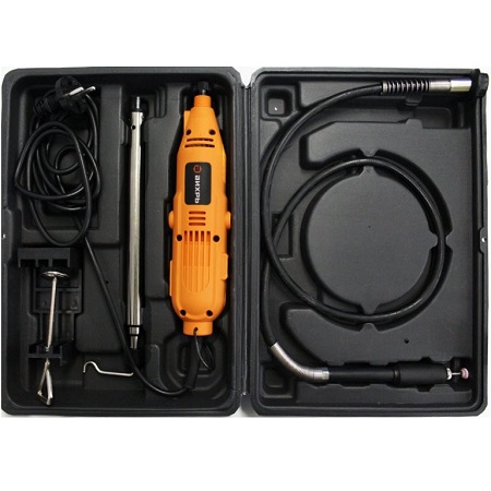 Посадочный диаметр 22,3 мм. Диаметр диска 114 мм. Частота вращения 5 000 об/мин. Мощность 100 Вт. Станок предназначен для заточки зубьев пильной цепи бензиновых и электрических цепных пил. Регулировки угла заточки цепи. Можно затачивать кромку пил и другие острые металлические инструменты, даёт возможность поправить фрезы, резцы и сверла. Механизм фиксации и регулировки угла зубья цепи.