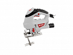 Мощность 850 Вт. Глубина реза сталь/дерево 10-100 мм. Производительность 800–3000 ходов пилки в минуту. Вес – 2,4 кг. Рукоятка с прорезиненной поверхностью.  Эта модель лобзика оснащена: Функция плавного пуска, регулируемая металлическая подошва и кнопка фиксации выключателя, лазерный указатель направления, подсветка, быстросъемное крепление пилки, система маятникового хода, удобно вынесенный на ручку регулятор оборотов, возможность подключения пылесоса.