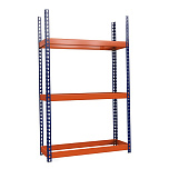Безболтовое крепление на зацепах, в качестве полок используется фанерный настил. Для оборудования складов, хранилищ и других помещений. Полки: оцинк. мет. 3 шт. Грузоподъемность каждой полки стеллажа - 300-450 кг. Нагрузка на секцию - до 2500 кг. Размеры: 2000x1240x770 мм. Вес: 50 кг.