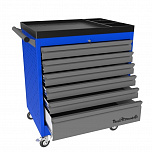 6 ящиков. Для хранения инструмента в ЕВРОЛОЖЕМЕНТАХ. Боковые панели с перфорацией (для установки аксессуаров). Цельносварная конструкция корпуса тележки. Центральный замок Euro-Lock. Шариковые направляющие полного выдвижения. Размеры (высота x ширина x глубина): 850 х 700 х 460 мм. Вес: 58,8 кг.