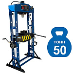 Усилие 50 тонн. Пресс гидравлический. Привод: ручной. Две скорости подачи пуансона. Первая скорость для быстрой подачи штока к рабочей поверхности, вторая (медленно) для выпрессовки. Применяется для запрессовки подшипников, деталей машин и механизмов в гаражах, автосервисах и СТО.
