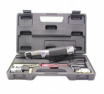 Пробойник для соединения листовых деталей, например при кузовных работах, а так же для создания кромки на листах. Диаметр отверстий: 5 мм. Максимальная толщина пробиваемого металла: 2 мм. Рабочее давление: 90 psi. Размер воздушного штуцера: 1/4"РТ. Длина: 250 мм. Вес: 1,28 кг.