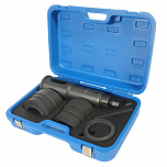 Для демонтажа подшипников трансмиссии коробки передач грузовых автомобилей. Не повреждает подшипник и сопряженные детали. Комплект включает в себя оправки для подшипников разных трансмиссий.