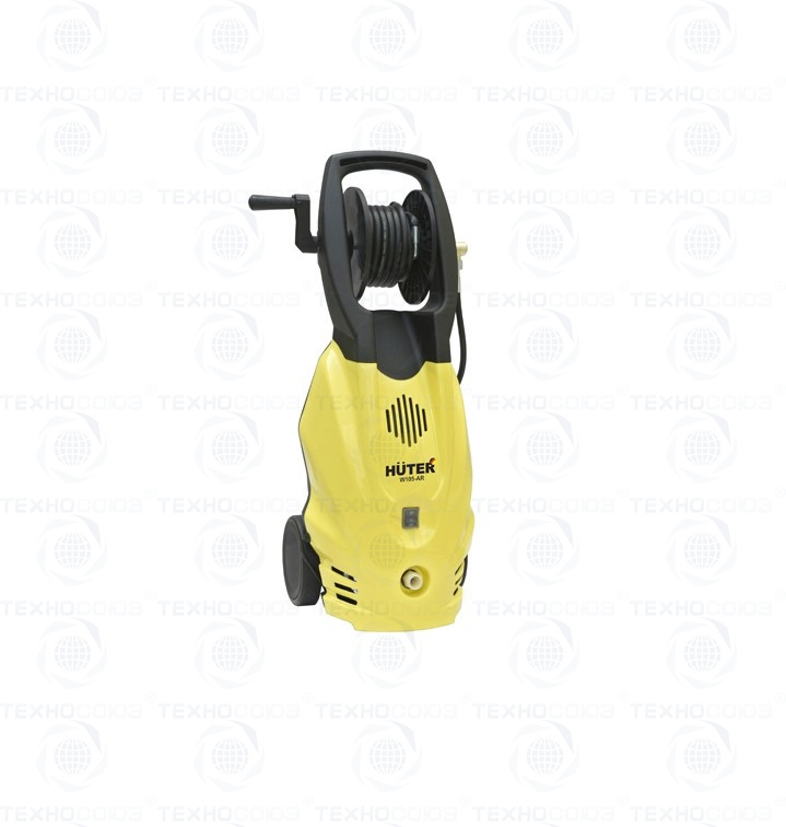 Мойка высокого давления Huter W105-AR имеет вертикальную компоновку. Для простого перемещения она оснащена парой колес и специальной ручкой. На верхней части корпуса предусмотрен барабан для наматывания шланга высокого давления. В таком виде шланг менее подвержен случайным повреждениям, а сама мини-мойка более удобна в хранении и транспортировке. Устройство не предназначено для перекачивания горячей воды, ее температура на входе не должна превышать 50ºС.