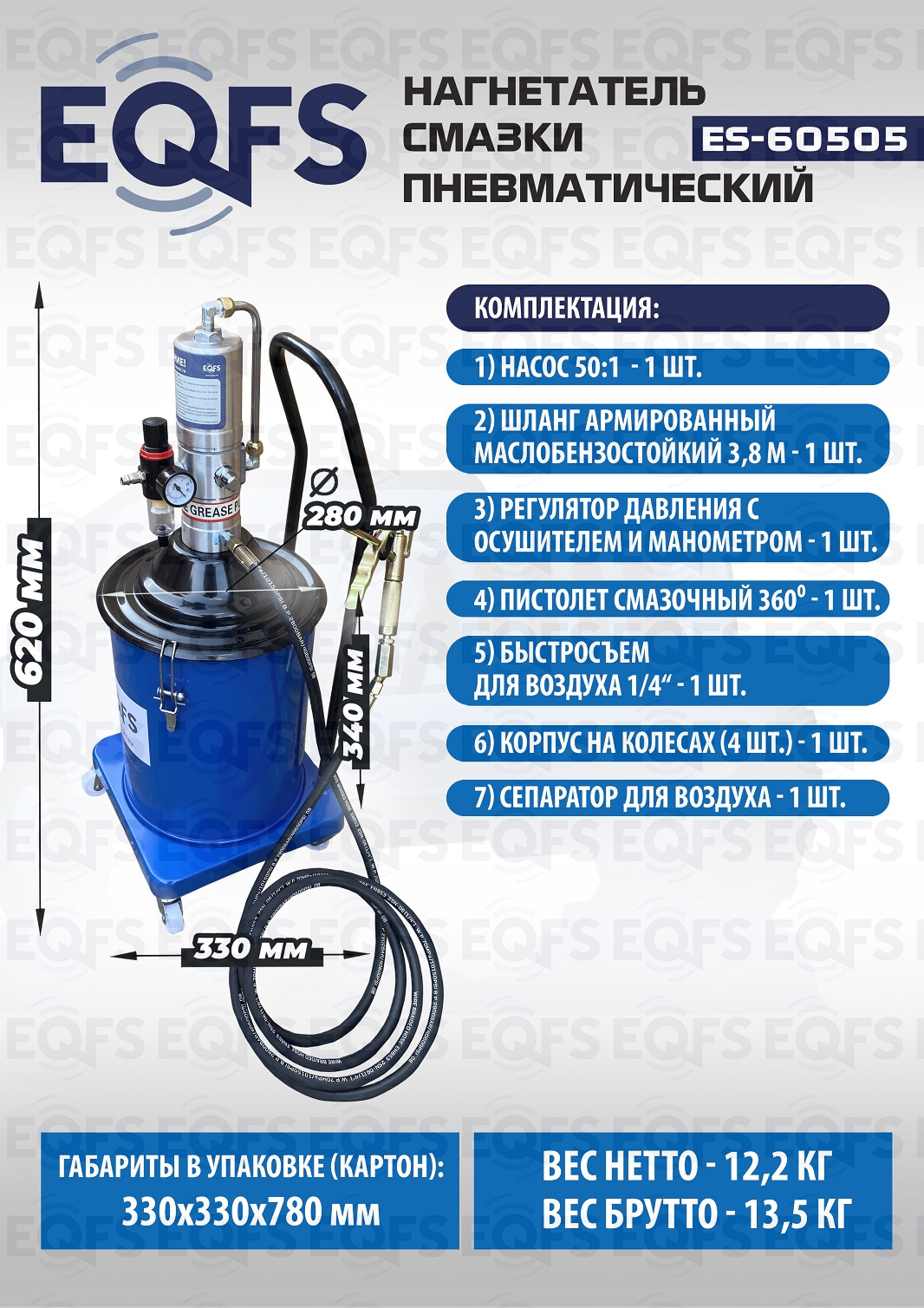Технические особенности пневматический нагнетатель смазки ES-60505: