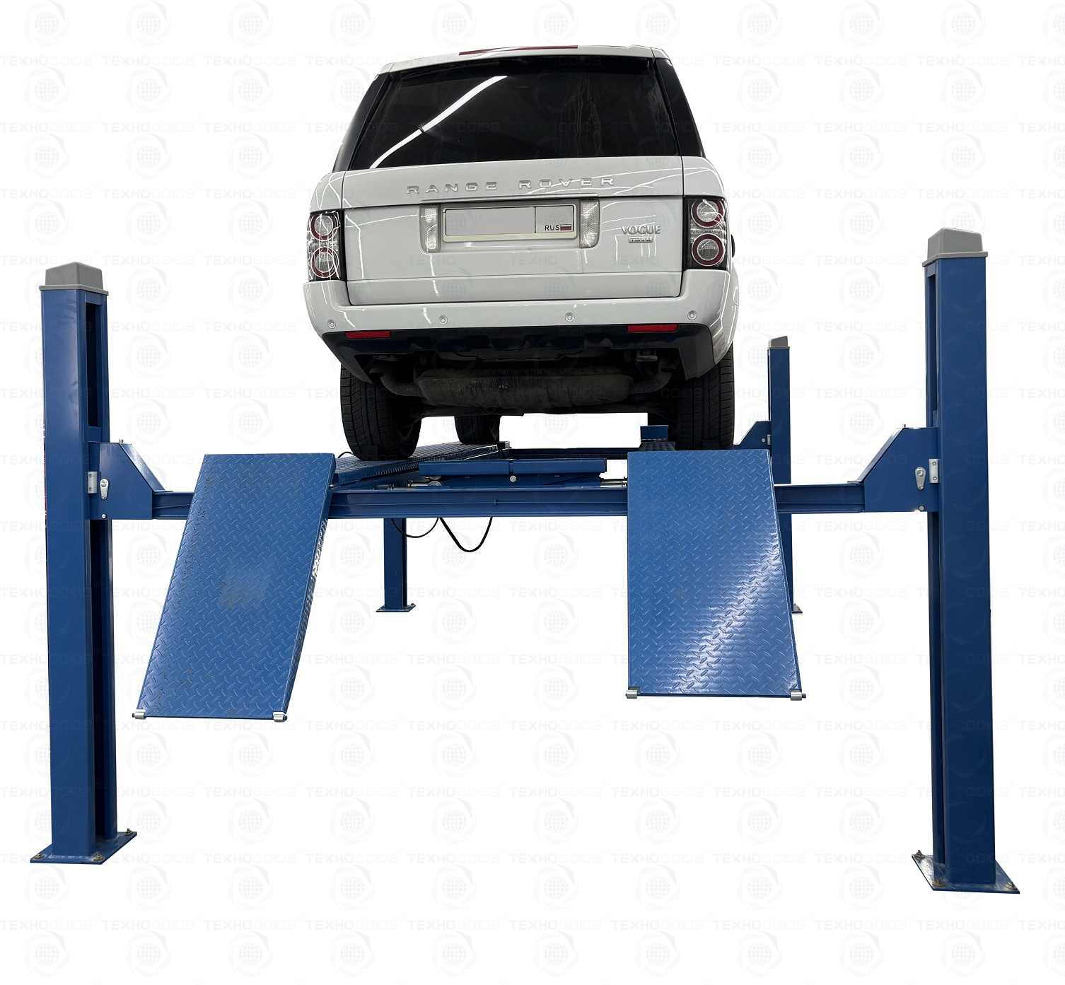 Комплект четырехстоечный подъемник для сход-развала ВСЕХ авто. Длина платформ 4850 мм. г/п.-4,0т. Для сход-развала ВСЕХ АВТО!!! В комплекте: Немецкий насос «Bucher hydraulics». Гарантия 2года + траверса 2т. + анкерные болты 16шт. + противооткатные ограничители 2шт. + противооткатные упоры 2шт. Для любых стендов сход-развал - 3D, лазерных, инфракрасных, кордовых. ВАЖНО!!! ДЛИННЫЕ ТРАПЫ -4800мм. — это позволяет прокатывать авто на подъёмнике. Многие стенды развала требуют прокатки!!! Подъём 1800мм, Между колоннами 2910мм. Усиленный — 1280кг металла.
