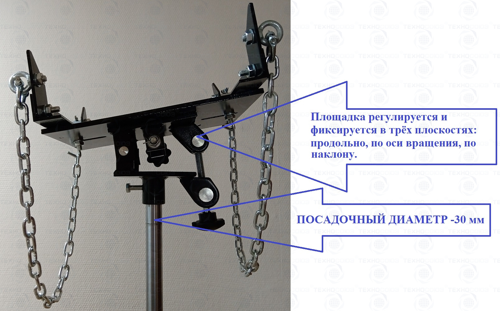 Площадка регулируется и фиксируется в трёх плоскостях: продольно, по оси вращения, по наклону.